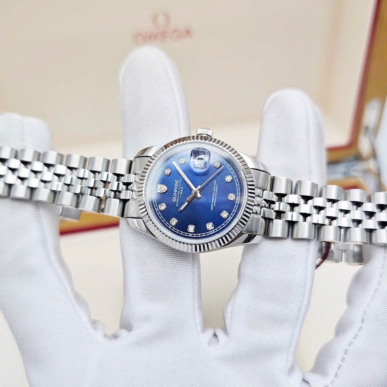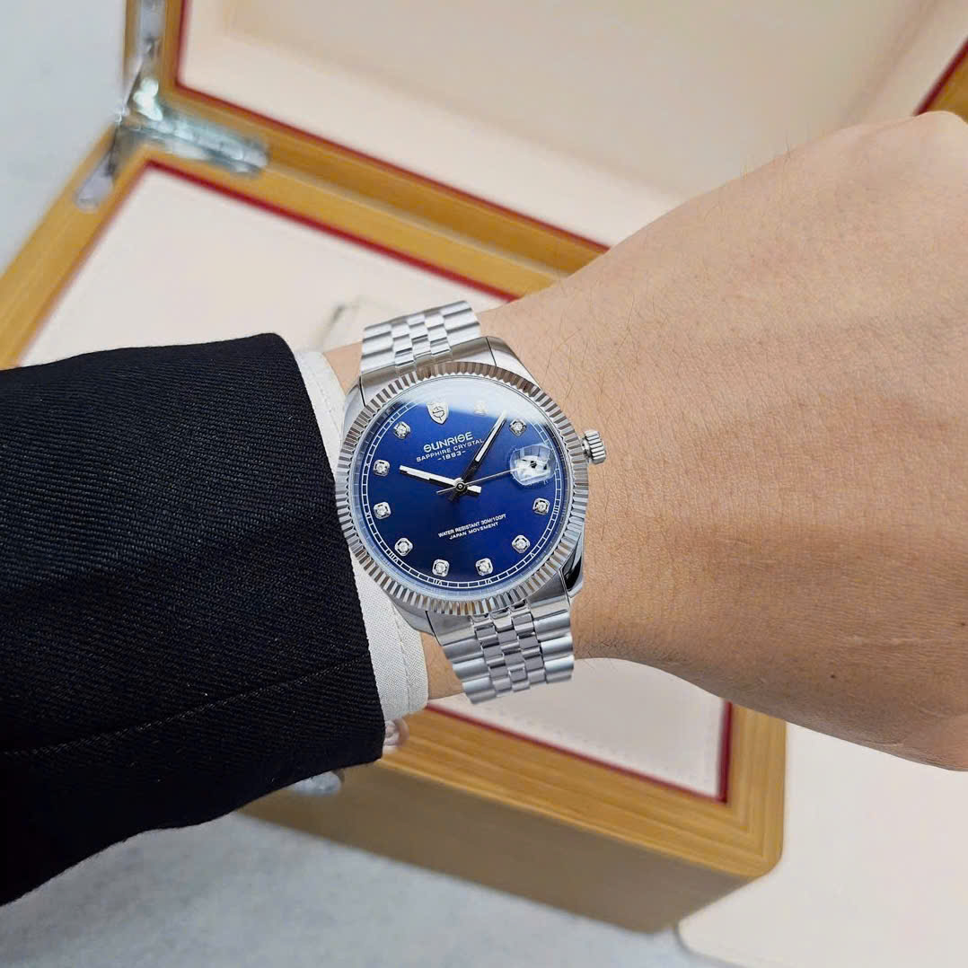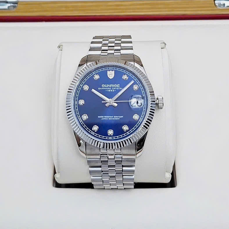Đồng Hồ Cặp Sunrise Quartz 1255SA 2255SA Thép Trắng Blue ( Giá 1 Chiếc )