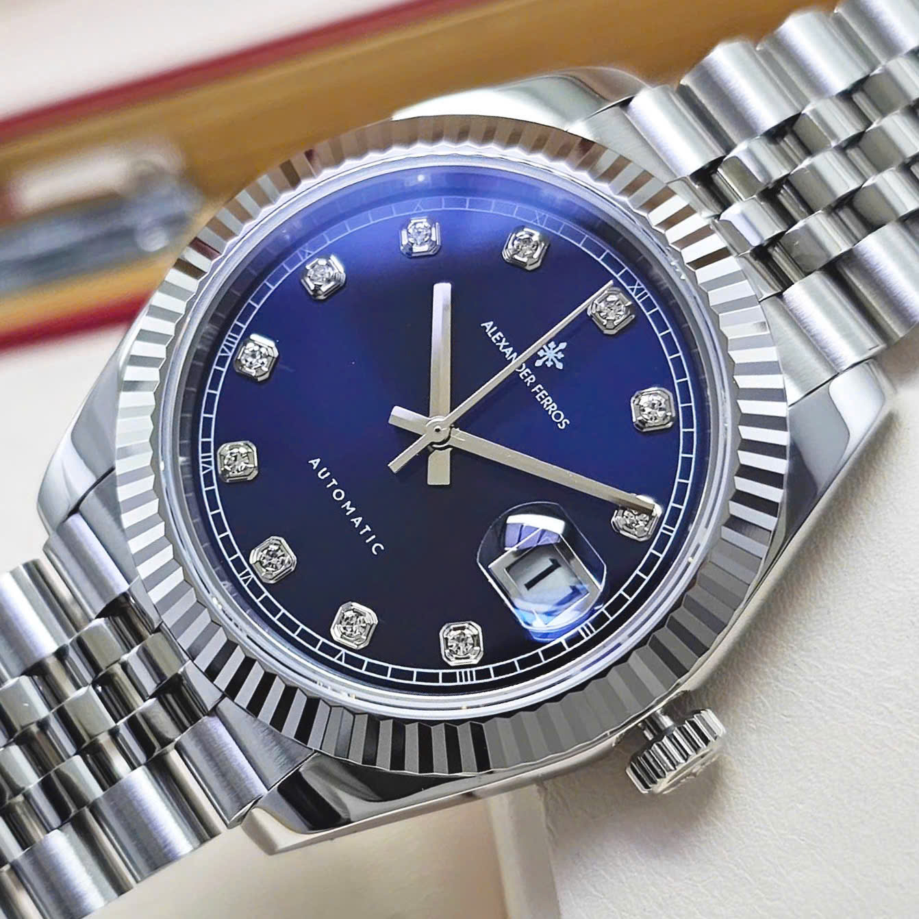 Alexander Ferros Automatic 8132S/05 là mẫu đồng hồ hội tụ đầy đủ các yếu tố: thiết kế đẹp, máy cơ bền bỉ, dễ đeo và dễ sử dụng. Với mặt số xanh sang trọng cùng điểm nhấn đính đá tinh tế, đây là lựa chọn lý tưởng cho nam giới muốn nâng tầm phong cách. Nếu bạn đang tìm một chiếc đồng hồ vừa lịch lãm, vừa có cá tính riêng – đây chính là ứng cử viên rất đáng cân nhắc.