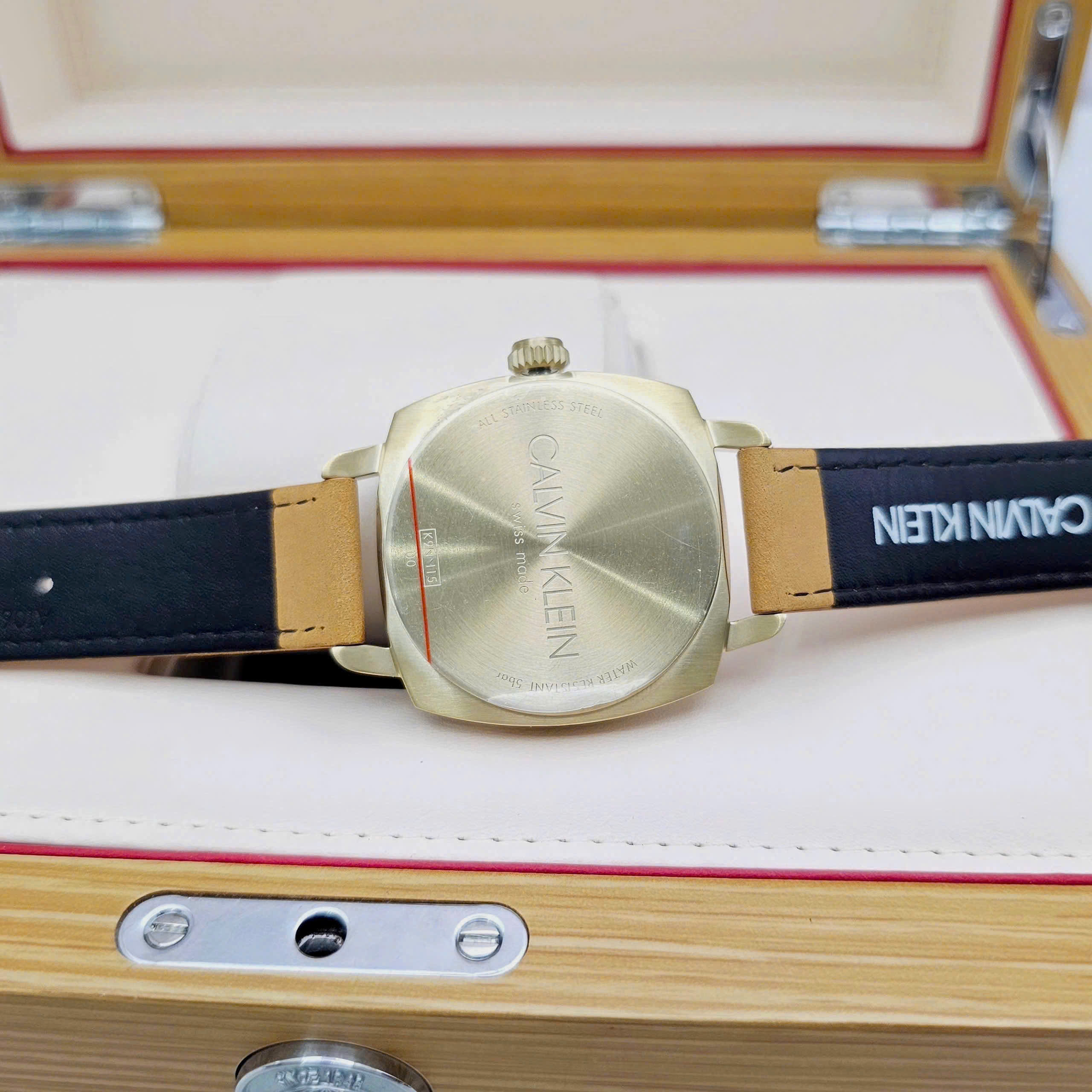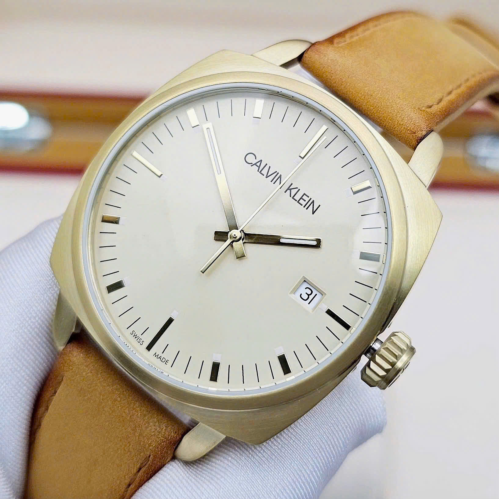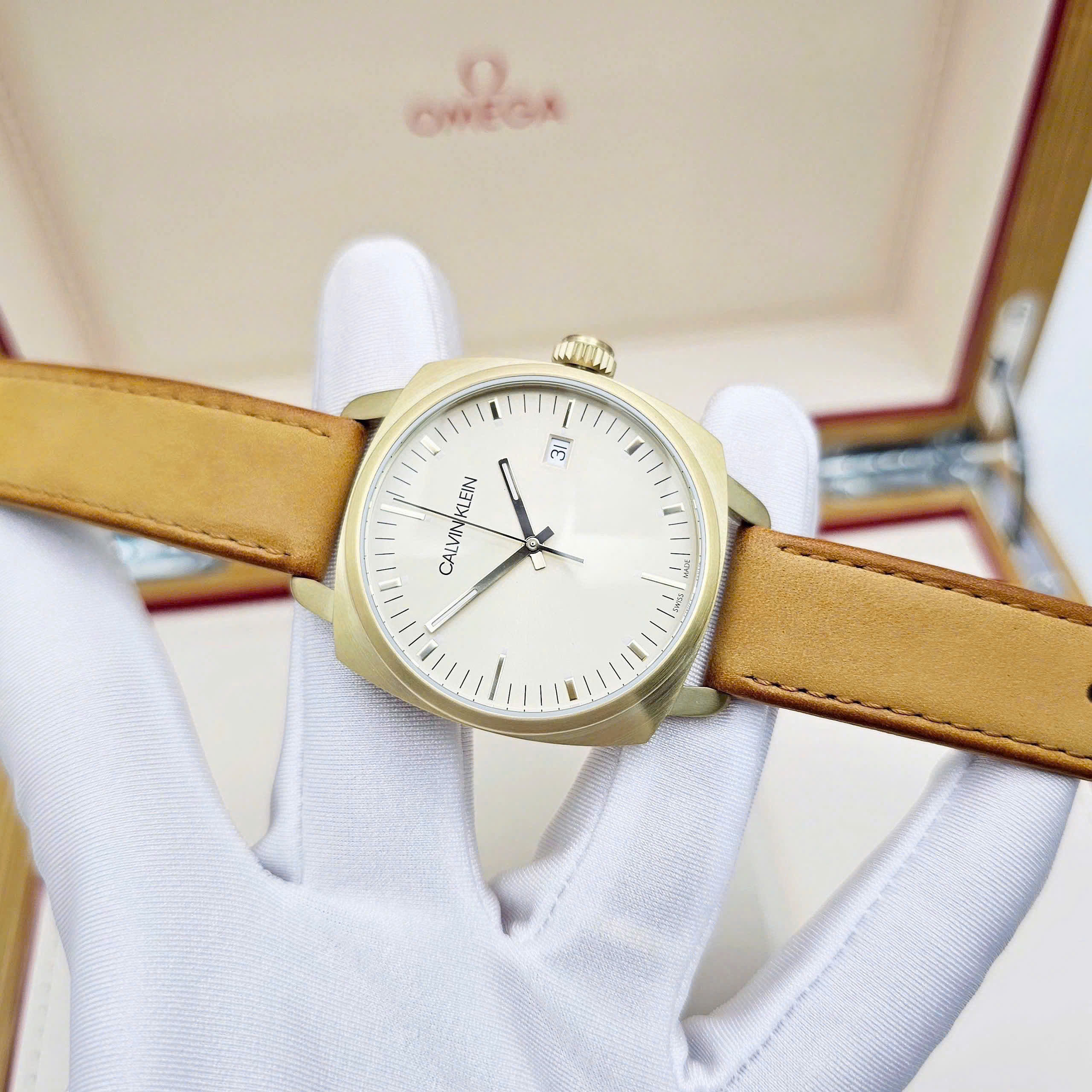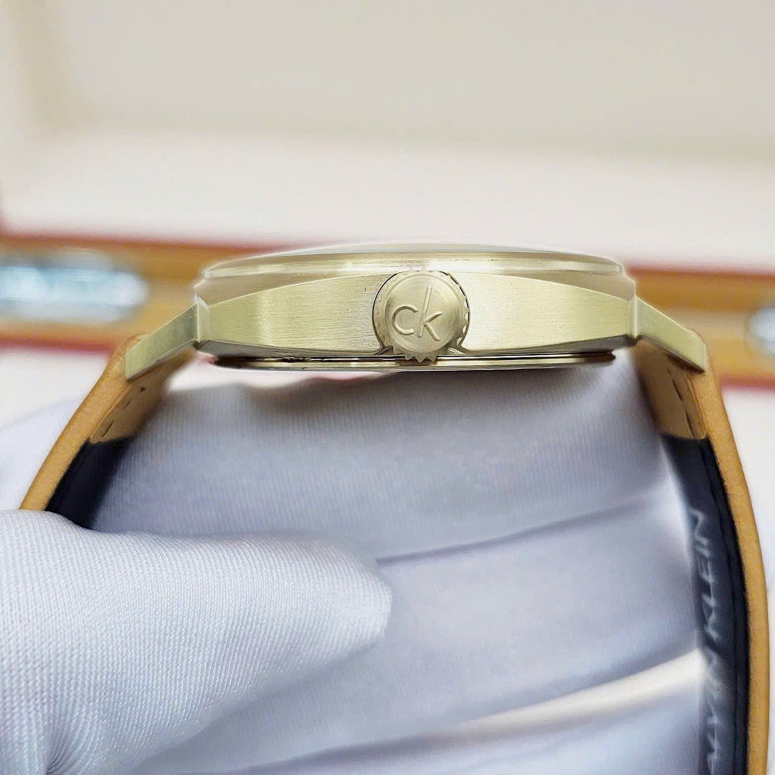 Mẫu Calvin Klein K9N115GH sang trọng và lịch lãm với sự kết hợp giữa bộ dây nâu cùng vỏ máy kim loại mạ vàng với tone màu vàng nhạt đem đến vẻ trẻ trung cho phái mạnh.