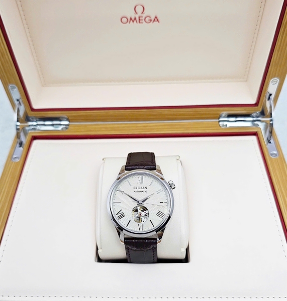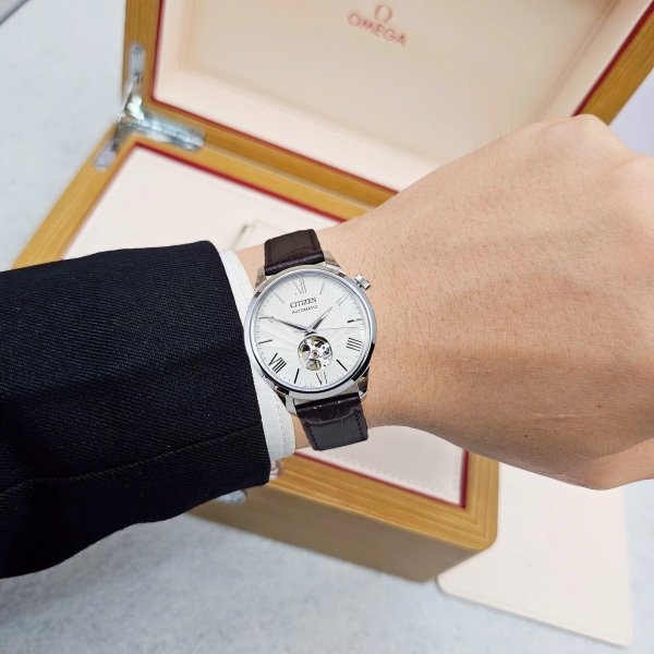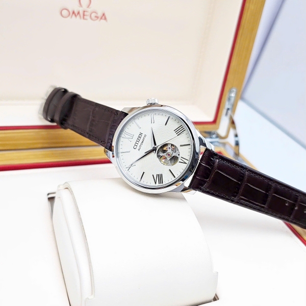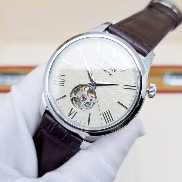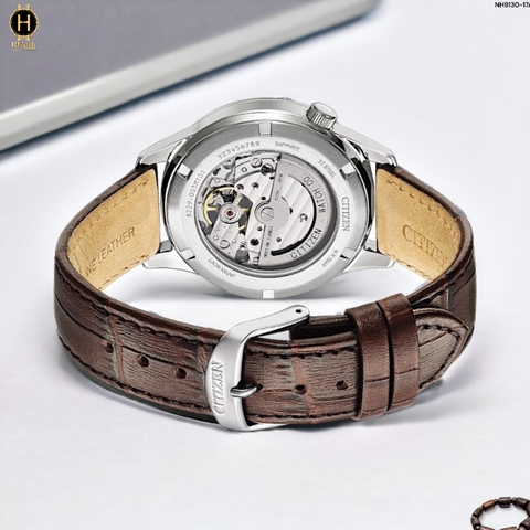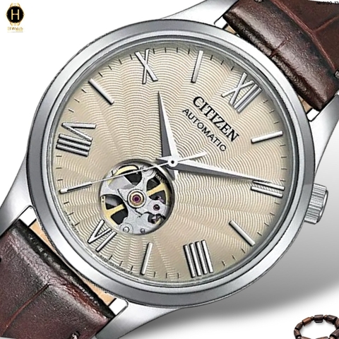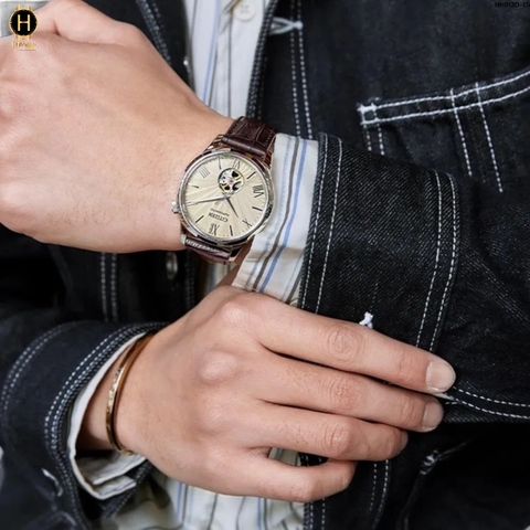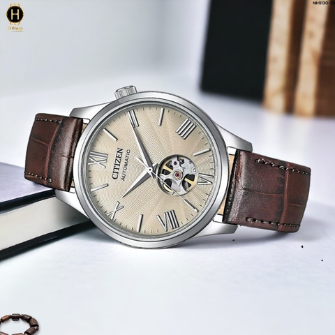 Đồng Hồ Nam Citizen Automatic Open Heart NH9130-17A Dây Da Nâu Mặt Beige