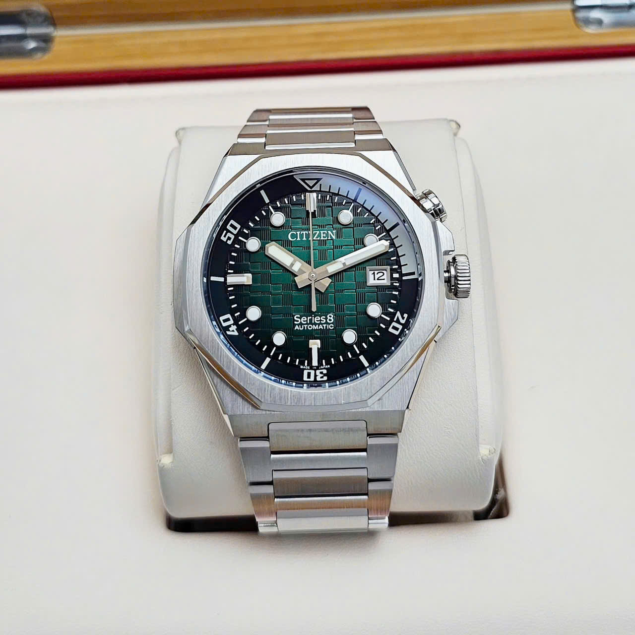 - Vỏ của Citizen Series 8 890 NB6060-58X làm từ thép không gỉ với hoàn thiện đánh chải và đánh bóng rất tinh tế. Chất liệu của Series 8 được đánh giá rất cao trong phân khúc.