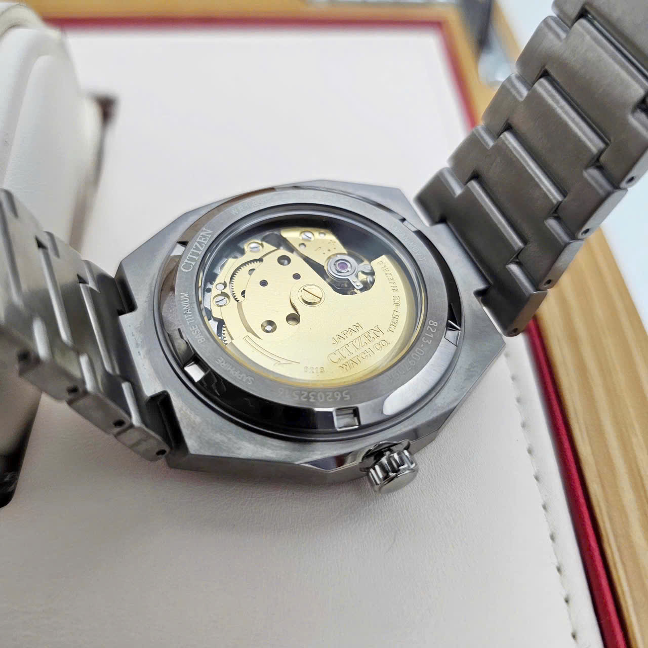 Khi bạn đeo Citizen Zenshin NJ0180-80X vào cổ tay – ngay lập tức cảm nhận được sự khác biệt: vỏ nhẹ cảm giác gần như “không đeo” dù nhìn từ bên ngoài vẫn hiện lên dáng đồng hồ mạnh mẽ. Màu xanh lá của mặt số dưới ánh sáng ban ngày hơi nghiêng về xanh rêu – nhưng khi vào trong ánh đèn vàng hoặc ánh hoàng hôn, sắc xanh chuyển sang ngọc lục bảo – rất đẹp và tinh tế.