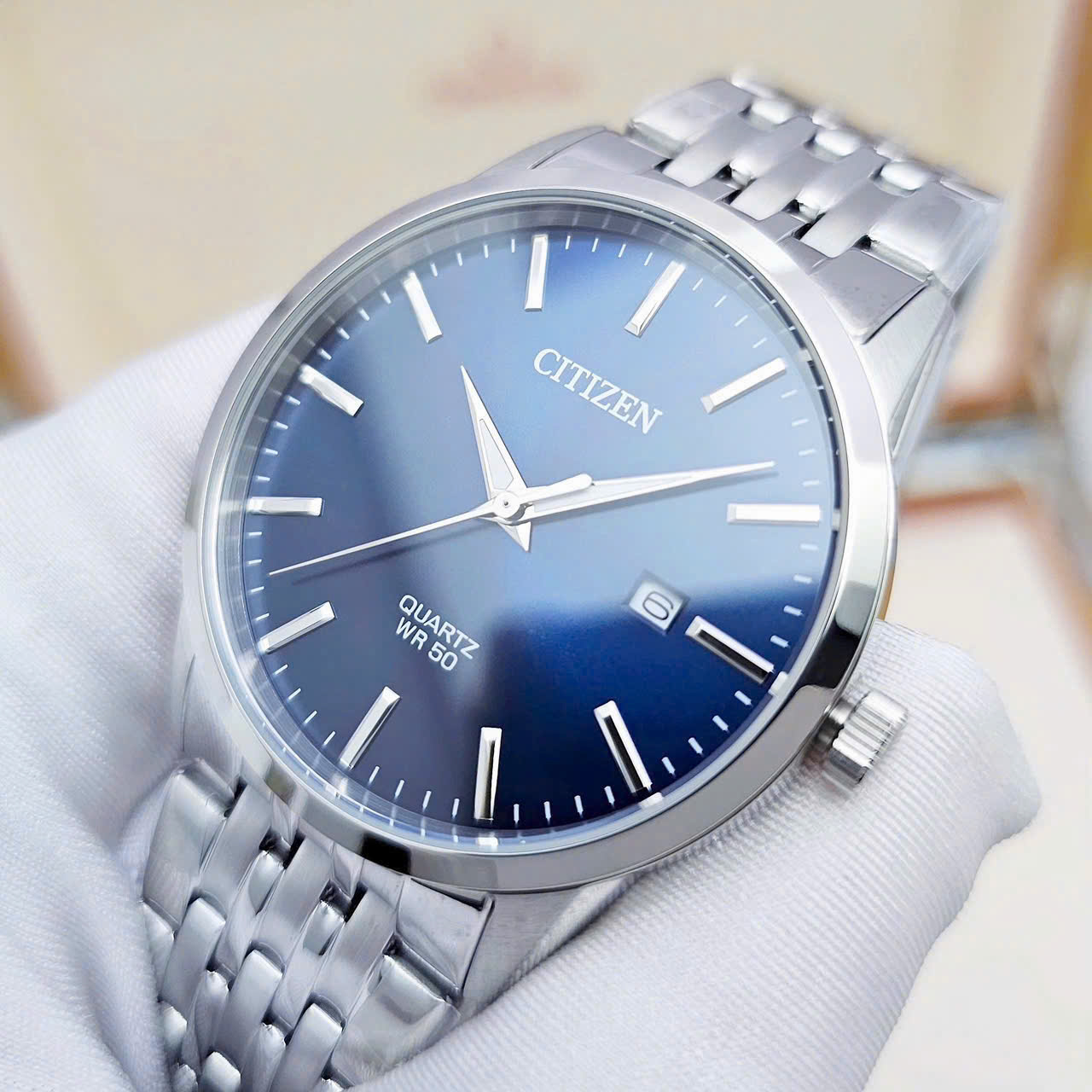 Đồng Hồ Nam Citizen Quartz BI5000-87L Dây Thép Vỏ Trắng Mặt Xanh