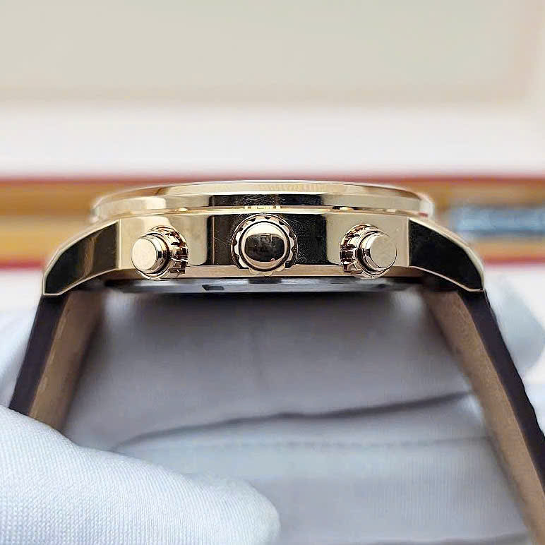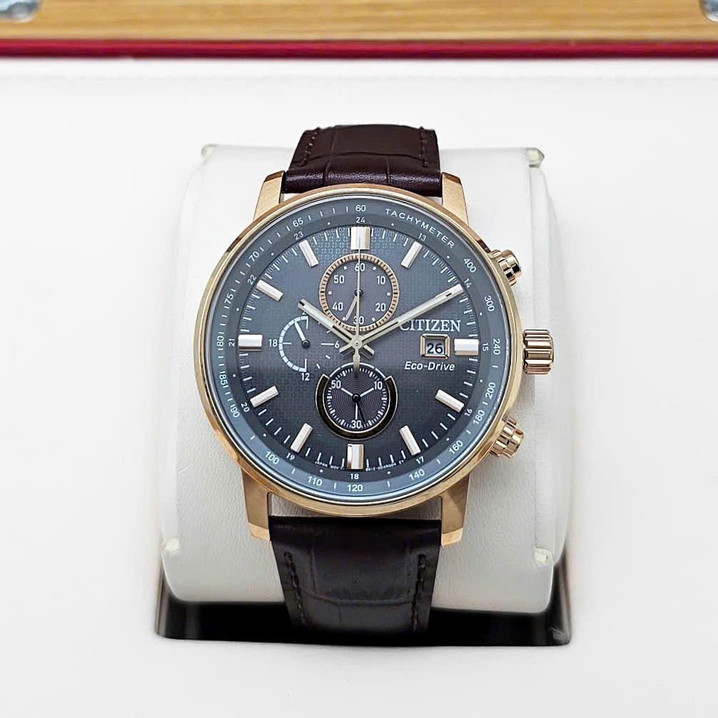 Đồng Hồ Nam Citizen Pin Eco-Drive CA0843-11H Dây Da Nâu Vỏ Vàng Hồng Mặt Xám.