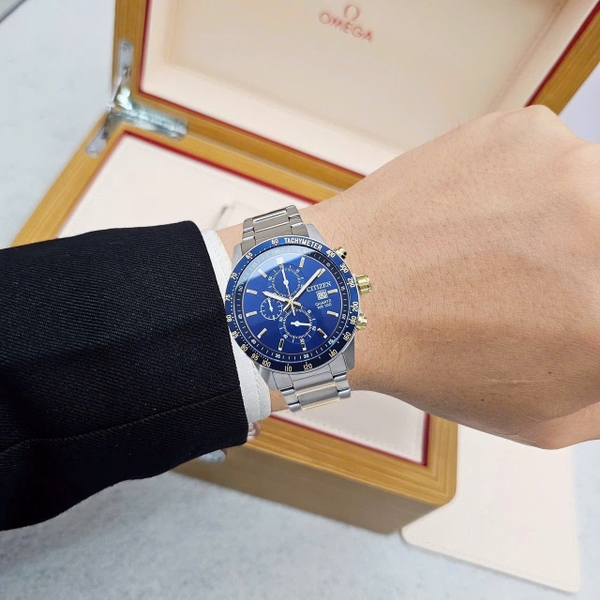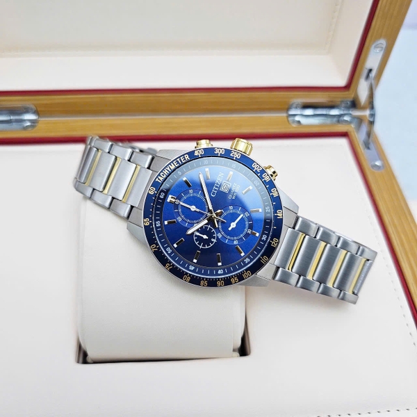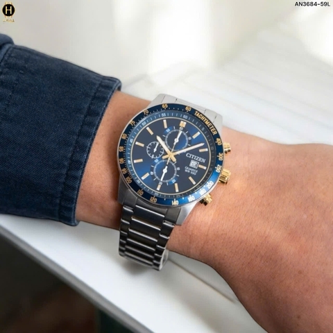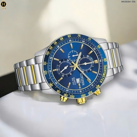 Đồng Hồ Nam Citizen Quartz  Chronograph Tachymeter Demi Gold Blue AN3684-59L