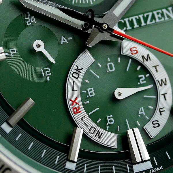 Citizen phiên bản mặt xanh lá là biểu tượng của sự đẳng cấp và hiện đại. Thiết kế mạnh mẽ với vỏ và dây thép không gỉ kèm titanium kết hợp cùng vành bezel khắc tên 26 thành phố. Bộ máy Eco-Drive tiên tiến giúp đồng hồ hoạt động bền bỉ và hấp thụ ánh sáng từ mọi nguồn mà không cần thay pin. Các kim phủ dạ quang và ô lịch ngày ở vị trí 3h giúp tối ưu khả năng quan sát trong mọi điều kiện ánh sáng. Đây là chiếc đồng hồ mang giá trị thương hiệu Nhật Bản xứng đáng là lựa chọn của những quý ông yêu thích sự sang trọng và tiện lợi trong từng khoảnh khắc.