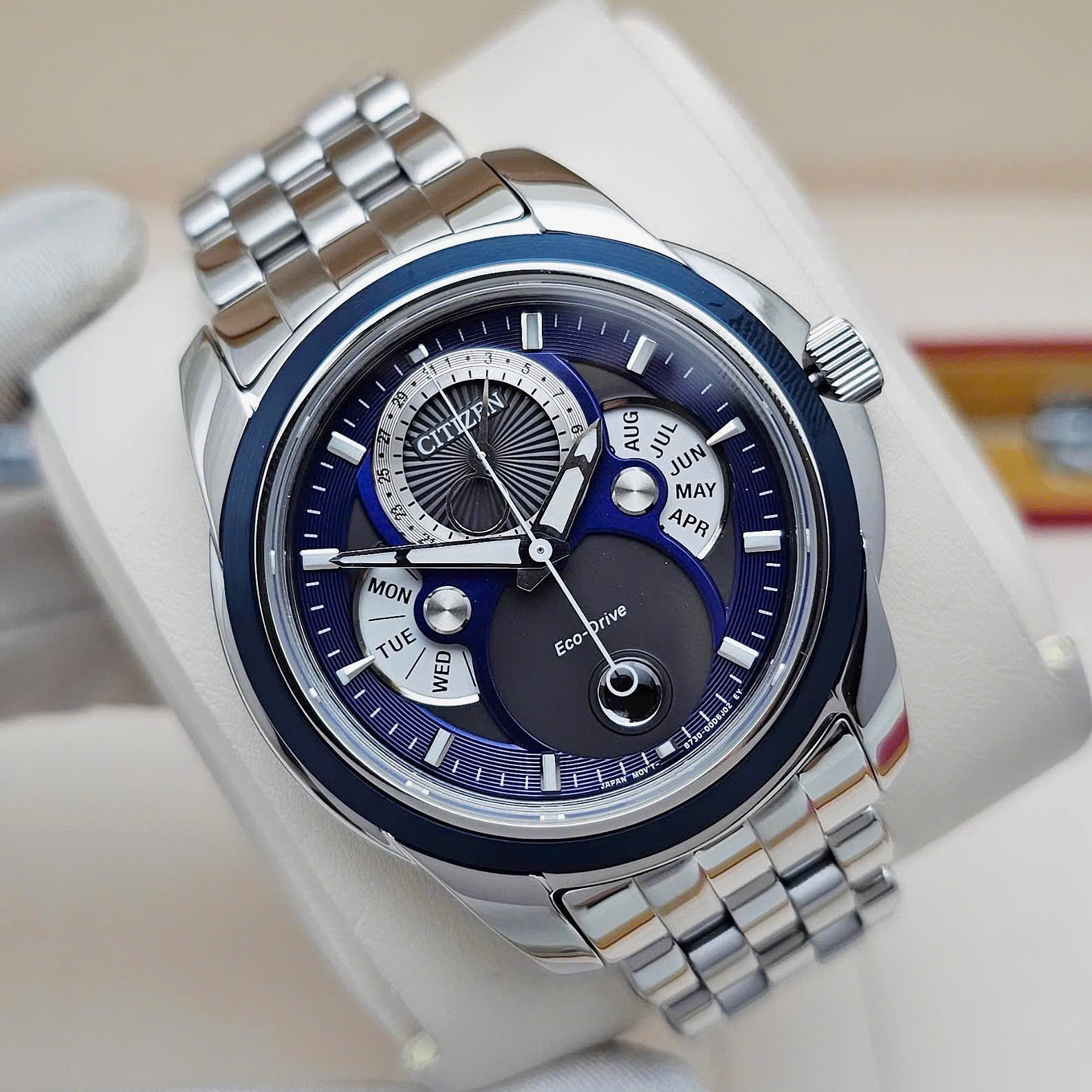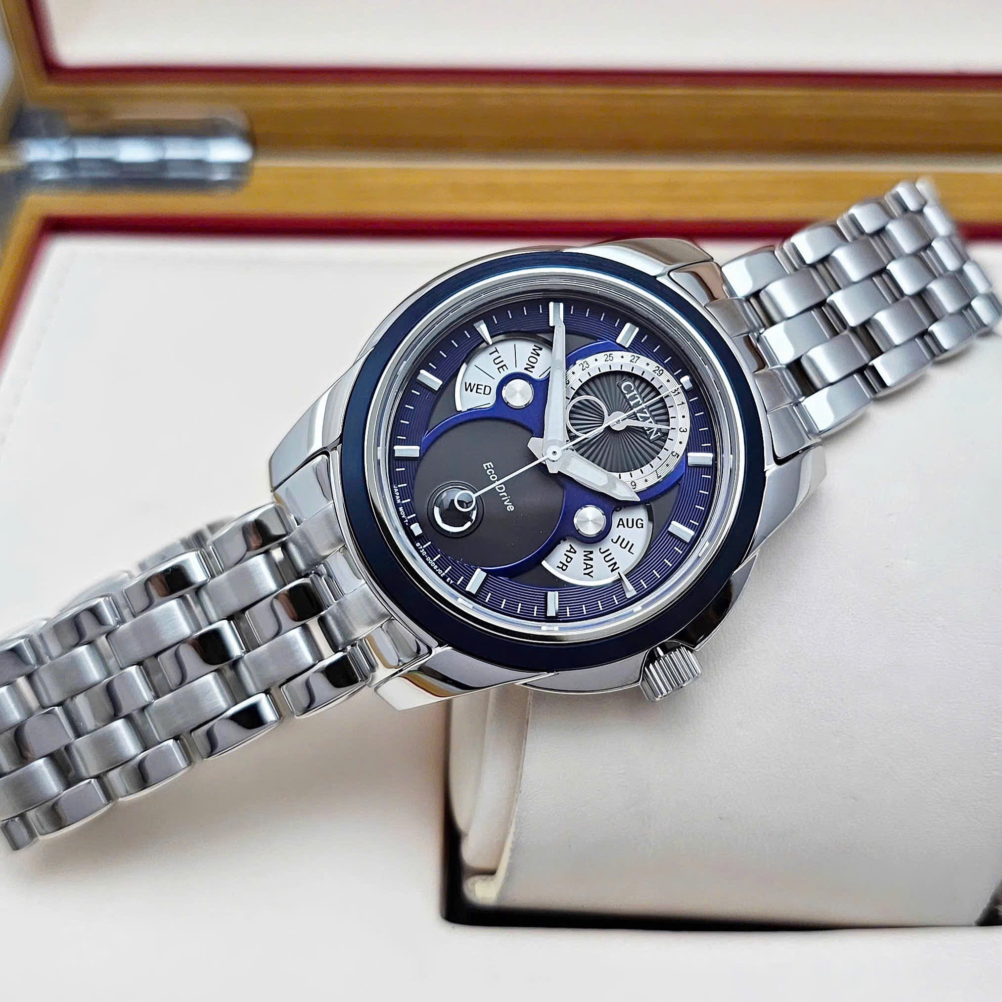 Đồng Hồ Nam Citizen Quartz Eco-Drive Calendrier Moon Phase Blue BU0088-51H