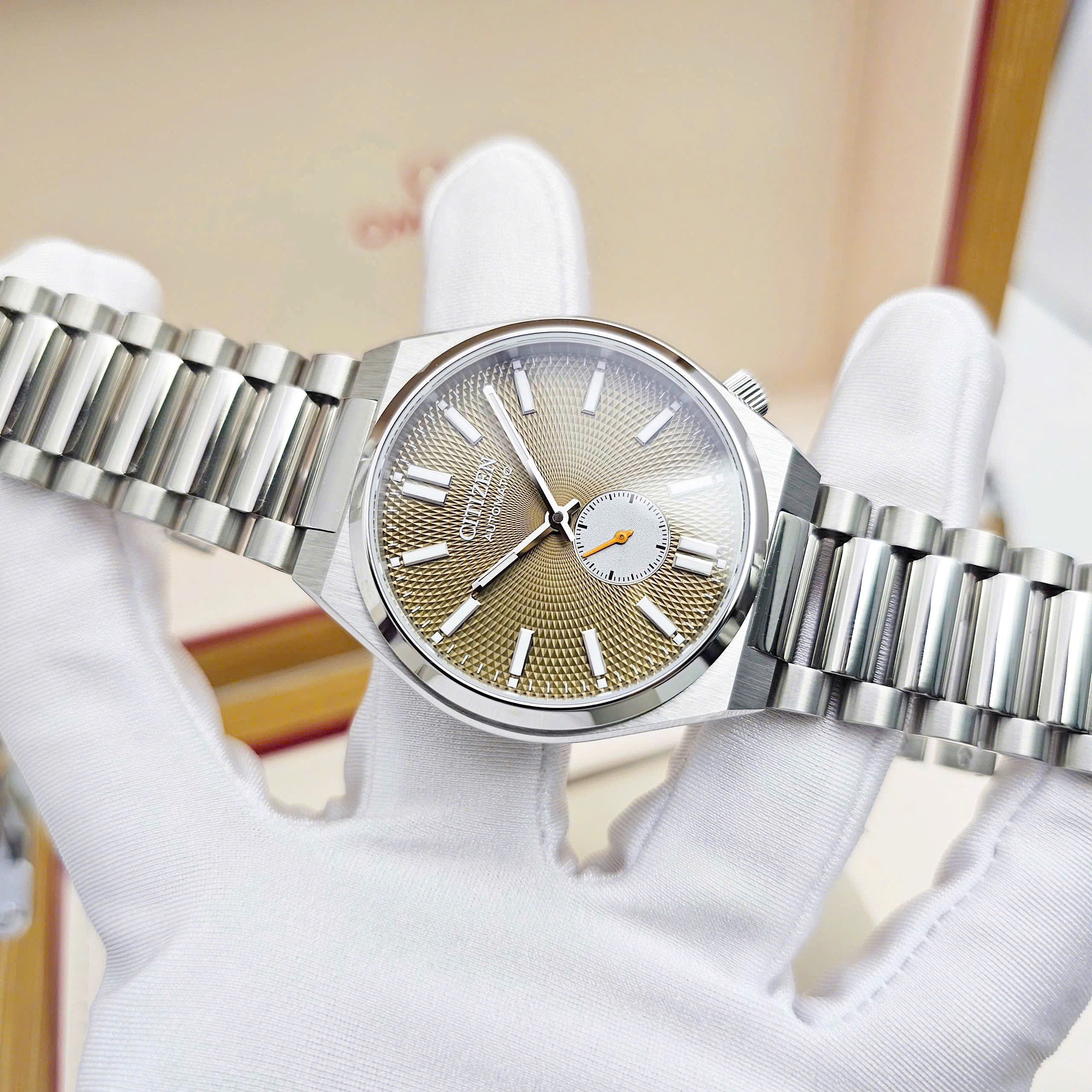 Thiết kế phom dáng hiện đại, thanh lịch. Mặt số vàng đồng cực đẹp, kim giây góc 6h độc đáo, đặc biệt là bộ máy Automatic trữ cót lên đến 60h cực mạnh mẽ.