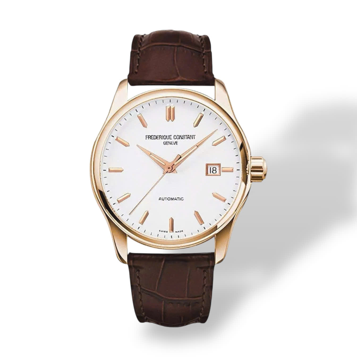 Chiếc Frederique Constant Automatic này mang phong cách thanh lịch kết hợp hoàn hảo giữa sự tối giản và đẳng cấp. Mặt số trắng tinh tế với kim và cọc số mạ vàng hồng sang trọng đi kèm cửa sổ lịch ngày gọn gàng tại vị trí 3 giờ. Bộ máy cơ vận hành chính xác thận thiện với môi trường. Vỏ thép không gỉ mạ vàng hồng kết hợp dây da nâu cao cấp mang đến vẻ ngoài tinh tế và toát lên phong thái quý ông. Đây là lựa chọn hoàn hảo cho doanh nhân và quý ông hiện đại muốn khẳng định vị thế và gu thẩm mỹ đẳng cấp.
