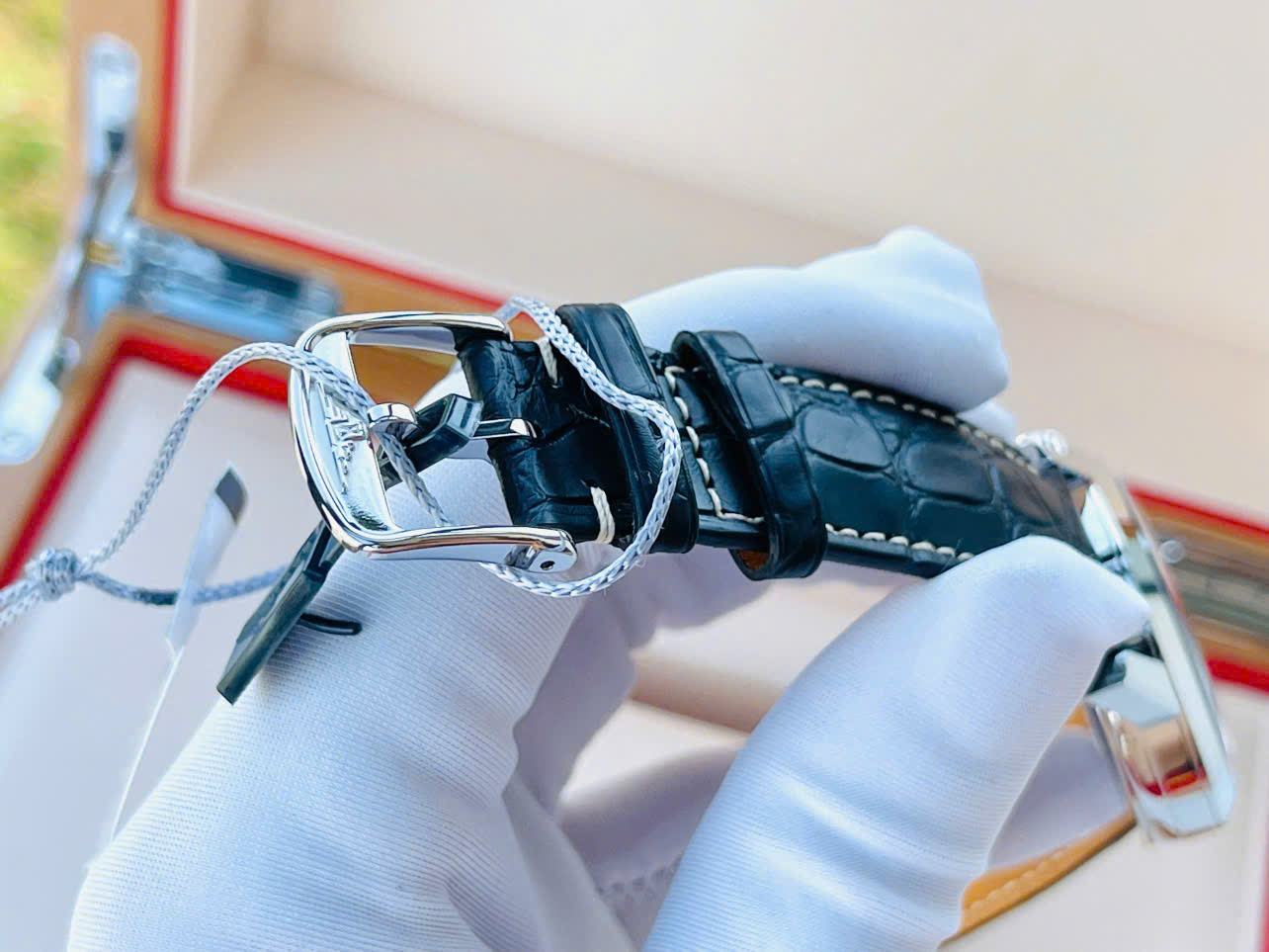 Dây da đen cao cấp, vân da sang trọng, phong cách cổ điển
