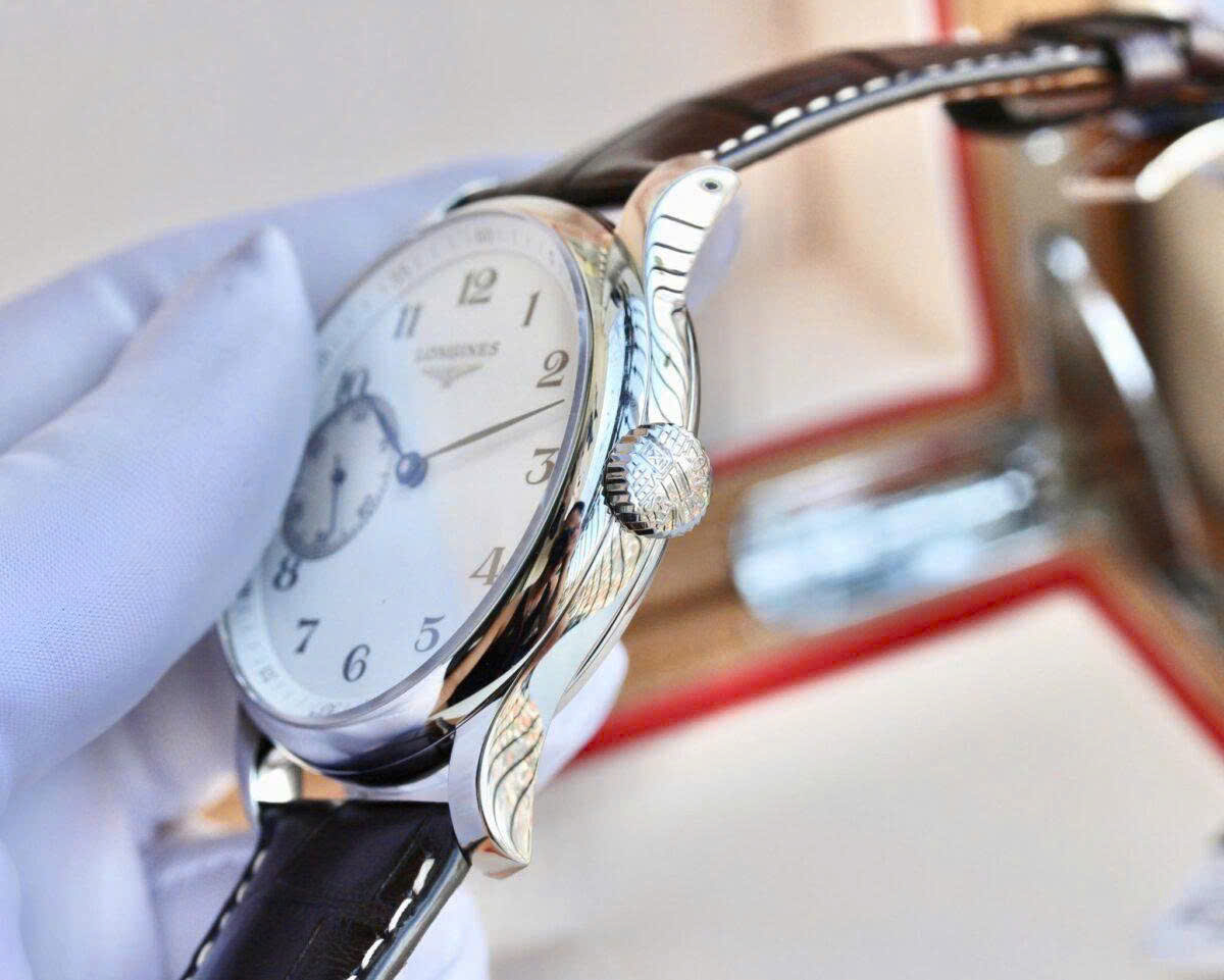 Chiếc đồng hồ Longines này sở hữu mặt số trắng thanh lịch mang hơi thở cổ điển xen lẫn nét hiện đại tinh tế. Các chữ số đen nổi bật trên nền trắng kết hợp bộ kim xanh thanh mảnh tạo điểm nhấn sang trọng. Mặt phụ giây nhỏ được bố trí cân đối tại vị trí 9h mang lại sự hài hòa và dễ quan sát. Vỏ thép không gỉ ôm trọn dây da nâu cao cấp vân cá sấu vừa bền bỉ vừa tôn lên phong thái lịch lãm. Đây là lựa chọn hoàn hảo cho những quý ông yêu sự giản dị nhưng vẫn muốn khẳng định đẳng cấp và gu thẩm mỹ tinh tế.