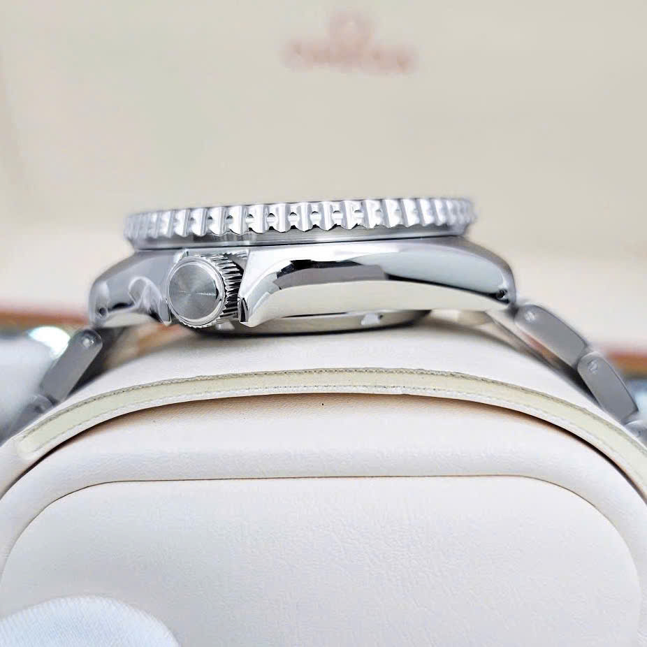 Thiết kế dây & vỏ thép không gỉ, các chấm tròn trắng dạ quang với thiết kế to bản nổi bật trên mặt đen huyền bí, vẻ ngoài dày dặn nam tính đặc biệt tính năng chống nước lên tới 100m phù hợp với bơi lội thích hợp cho phái mạnh.