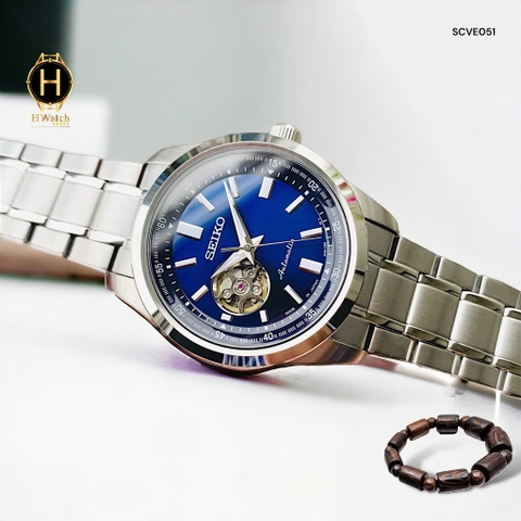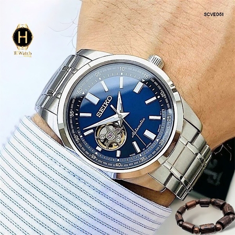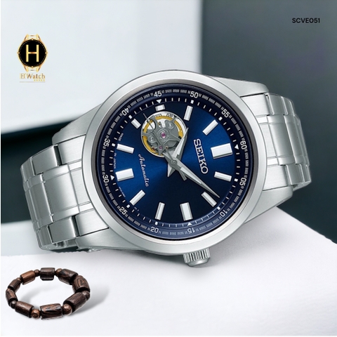 Đồng Hồ Nam Seiko Automatic Open Heart SCVE051 Dây Thép Vỏ Trắng Mặt Xanh