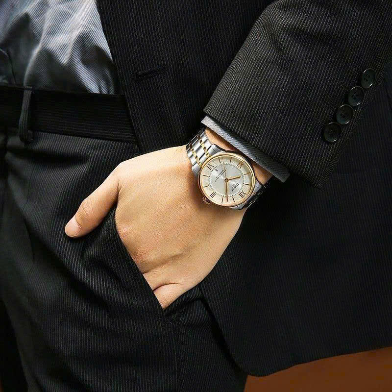 Thiết kế mang dáng vẻ tinh tế với sự hòa quyện giữa thép - vàng hồng sang trọng. Mặt số trang trí Guilloché cùng cọc số La Mã cổ điển tạo nên chiều sâu cuốn hút. Đây là chiếc đồng hồ không chỉ chuẩn xác và bền bỉ mà còn tôn vinh phong thái lịch lãm của quý ông hiện đại.