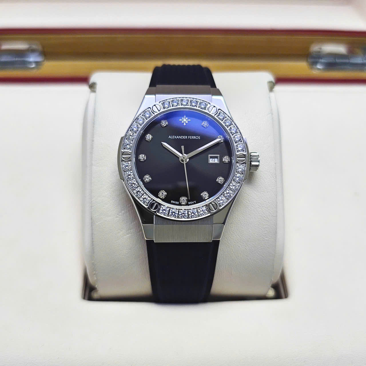 Đồng Hồ Nữ Alexander Ferros Quartz 2251S-01 – Mặt Đen Cá Tính, Thanh Lịch Hiện Đại