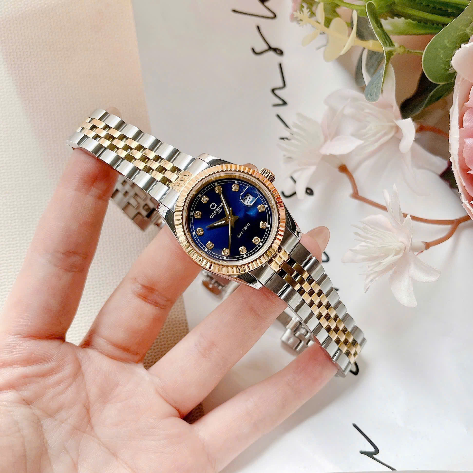 Thiết kế mang phong cách cổ điển – sang trọng vượt thời gian, mặt số tròn thanh lịch kết hợp với cọc số đính đá lấp lánh, tạo nên vẻ đẹp tinh xảo và quý phái kết hợp bộ vỏ và dây thép không gỉ demi mạ vàng sang trọng, viền tạo rãnh dạng khía sắc nét, nổi bật như một món trang sức cao cấp trên cổ tay làm bao cô nàng say đắm.