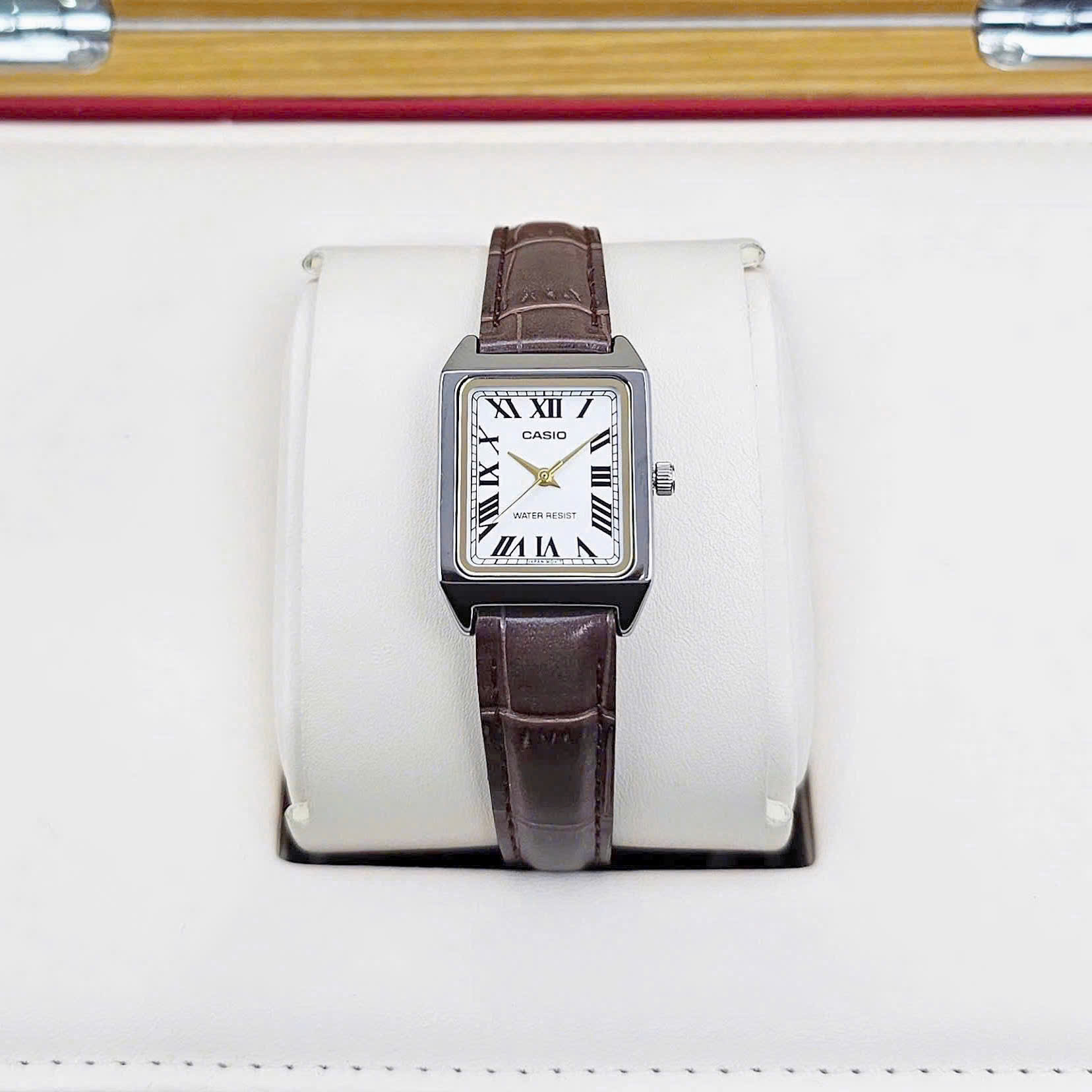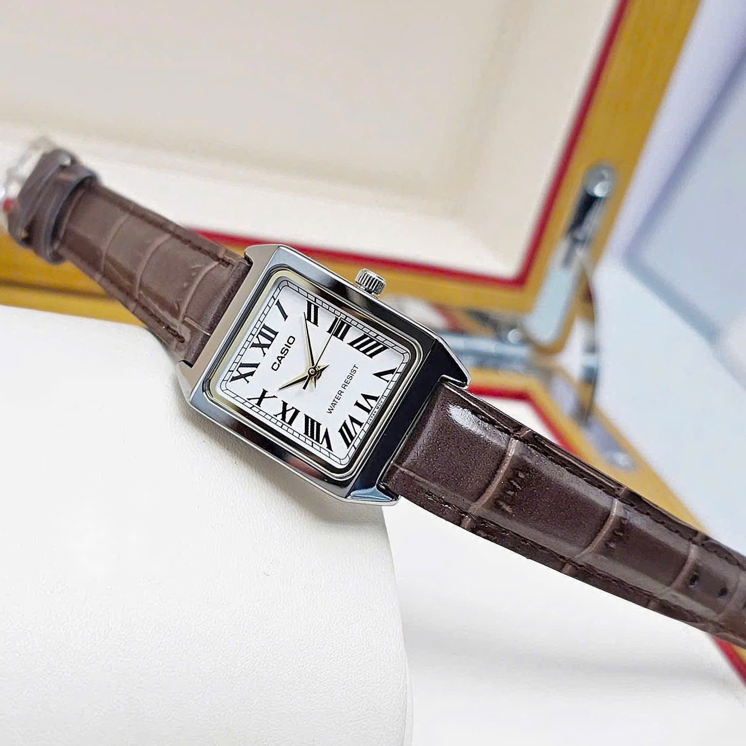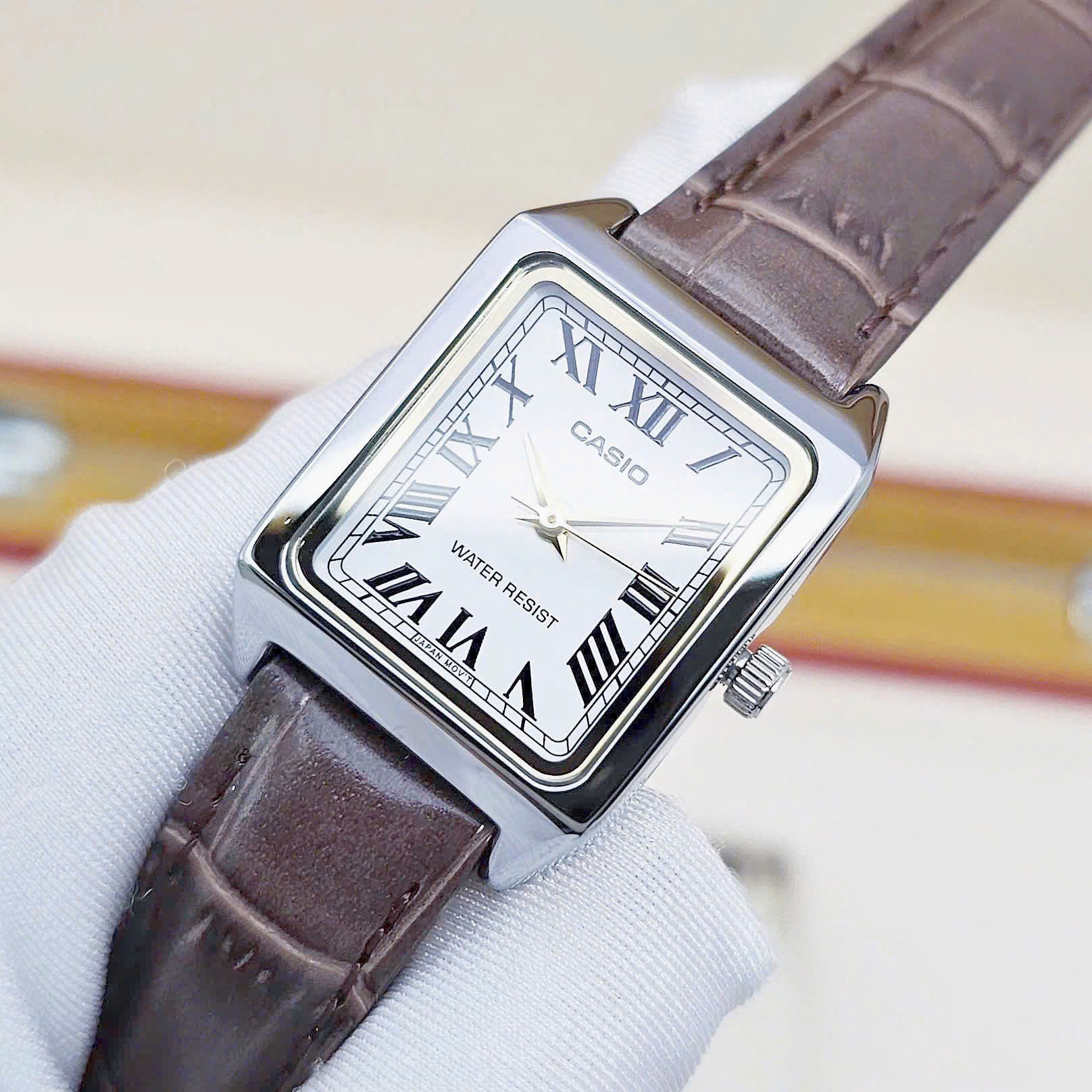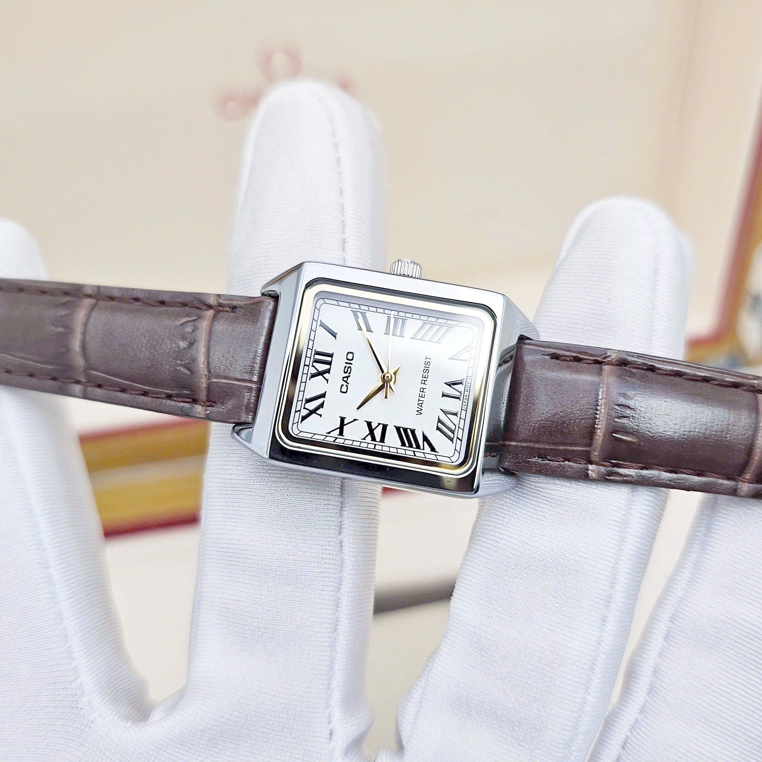 Thiết kế vuông nhỏ nhắn ôm cổ tay làm tôn lên vẻ nữ tính và hiện đại cho phái nữ.