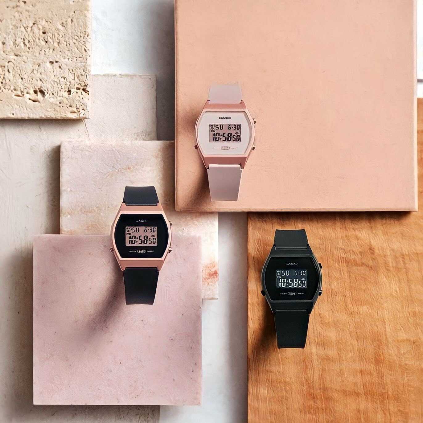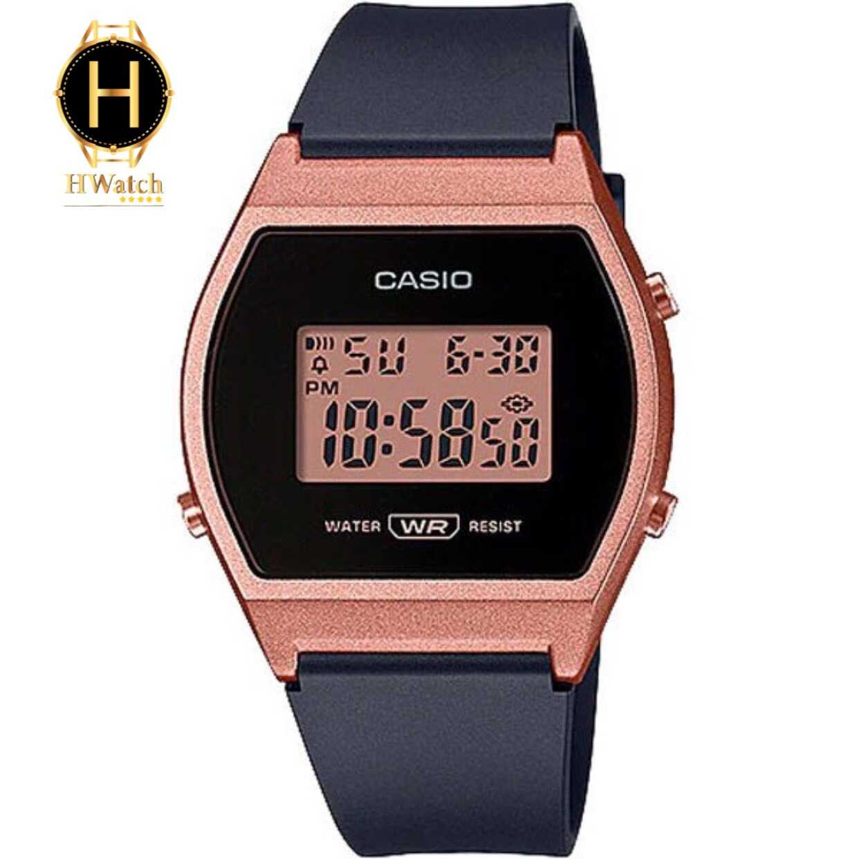 Đồng Hồ Nữ Casio LW-204-1A Dây Nhựa Màu Đen Vỏ Nhựa Vàng Hồng