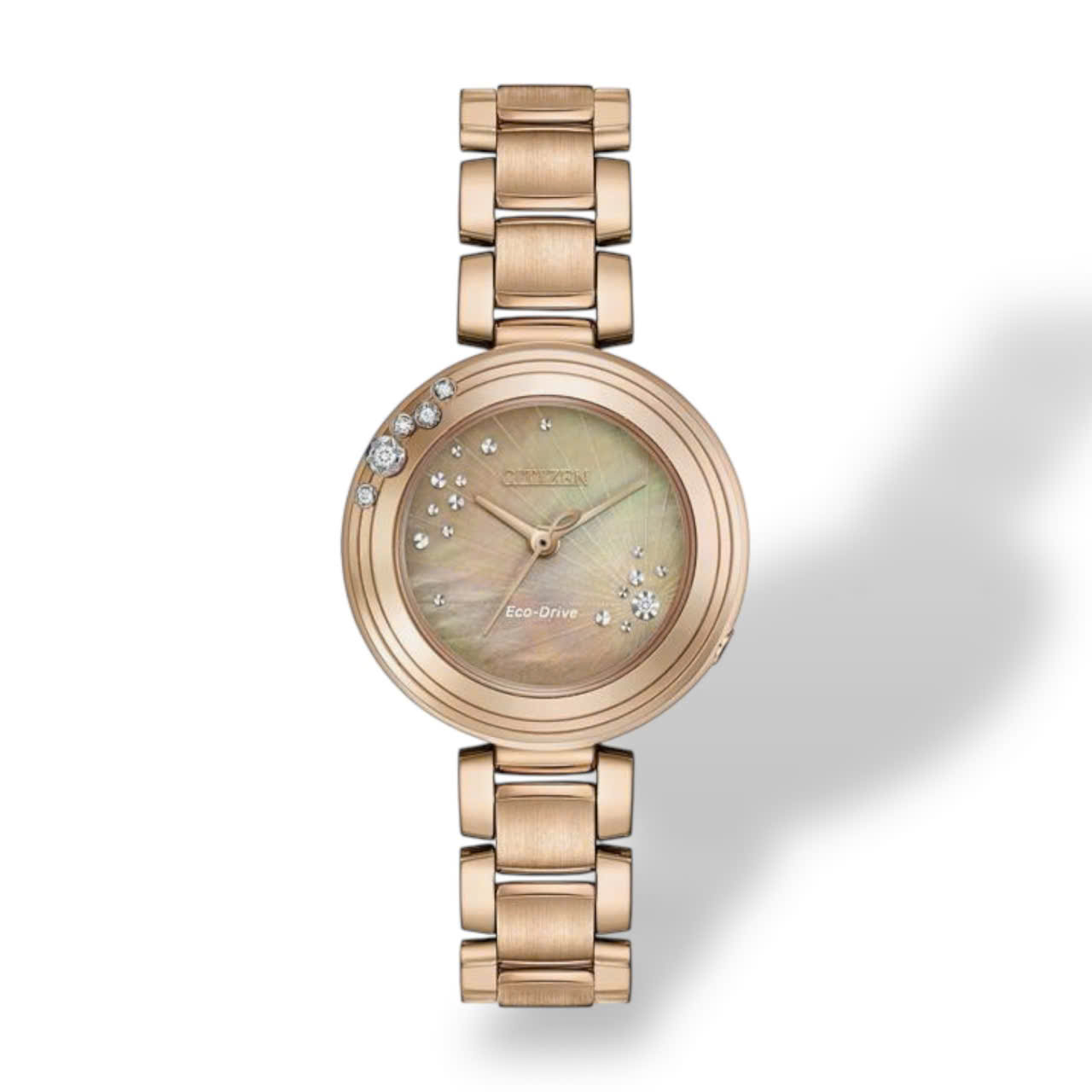 Citizen Eco-Drive với thiết kế mạ vàng hồng sang trọng và mặt số khảm trai lấp lánh là một tuyệt phẩm đồng hồ dành cho những ai yêu thích sự tinh tế và đẳng cấp. Các viên kim cương được đính tỉ mỉ trên mặt số tạo hiệu ứng ánh sáng tuyệt đẹp mang đến vẻ ngoài quý phái và nổi bật. Vỏ và dây thép không gỉ mạ vàng hồng cao cấp giúp tăng thêm sự bền bỉ và thoải mái khi đeo. Với công nghệ Eco-Drive chiếc đồng hồ hoạt động bằng năng lượng ánh sáng không cần thay pin rất tiện lợi và thân thiện với môi trường. Đây là lựa chọn hoàn hảo dành cho các quý cô yêu thích sự thanh lịch và phong thái tự tin.
