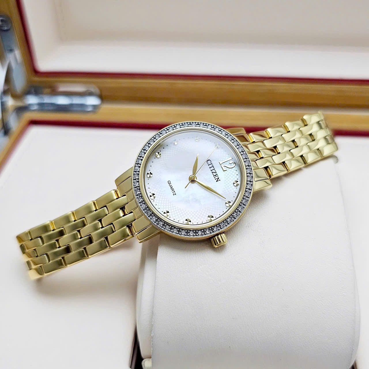 Ở phân khúc đồng hồ nữ Quartz, Citizen đặc biệt mạnh nhờ khả năng kết hợp giữa thẩm mỹ nữ tính và độ bền thực dụng, điều mà không phải thương hiệu thời trang nào cũng làm được.