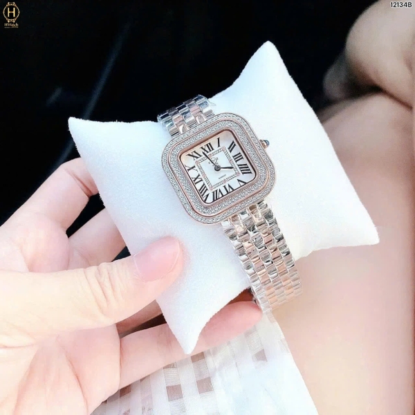 Thiết kế tỉ mỉ, tinh tế & xa hoa với mặt số vuông trắng nhỏ xinh nổi bật là cọc số La mã cổ điển cùng sự lấp lánh sang trọng của những viên kim cương xứng đáng là món phụ kiện không thể thiếu cho phái đẹp.