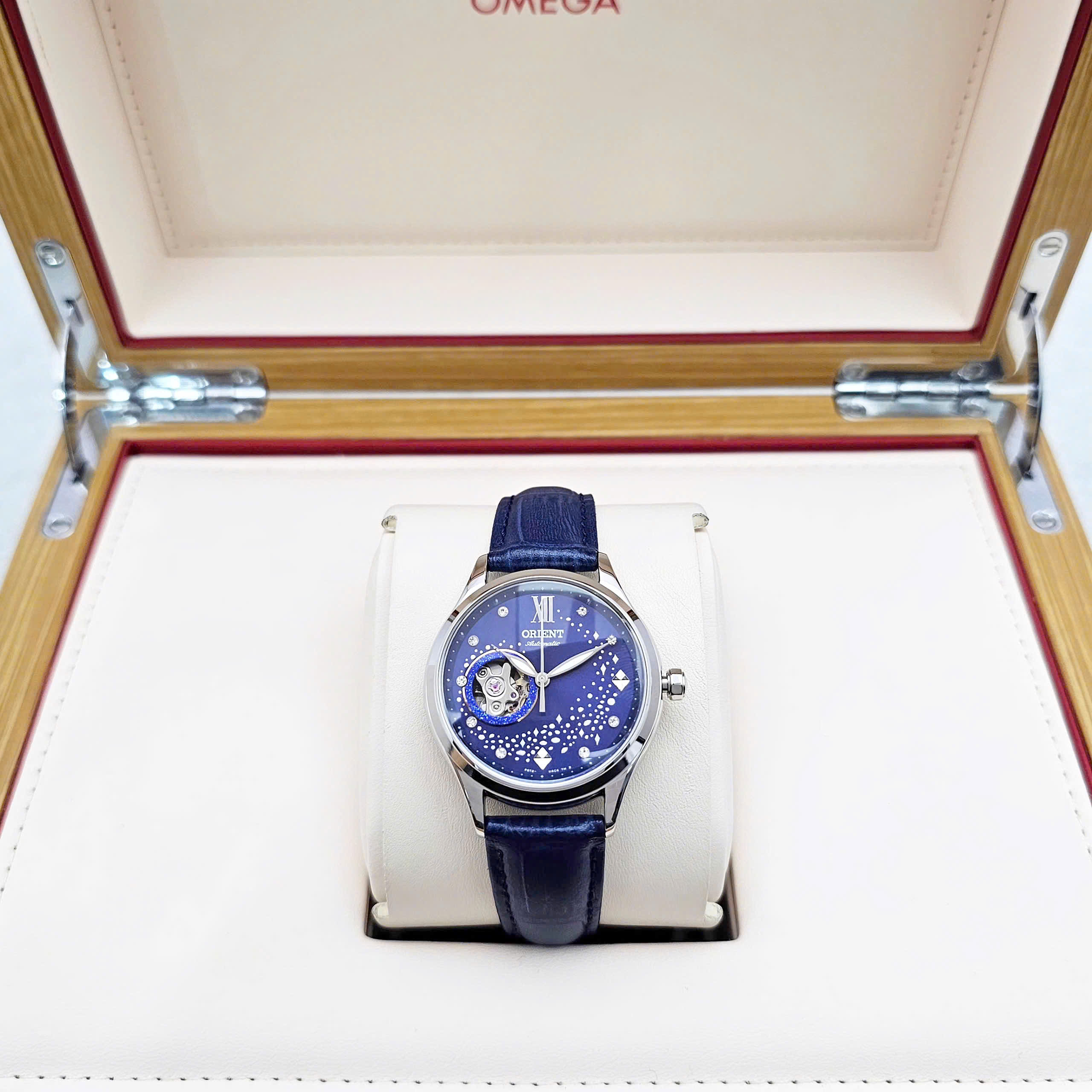 Đồng Hồ Nữ Orient Automatic RA-AG0018L10B Open Heart Dải Ngân Hà Dây Da Vỏ Trắng Mặt Xanh