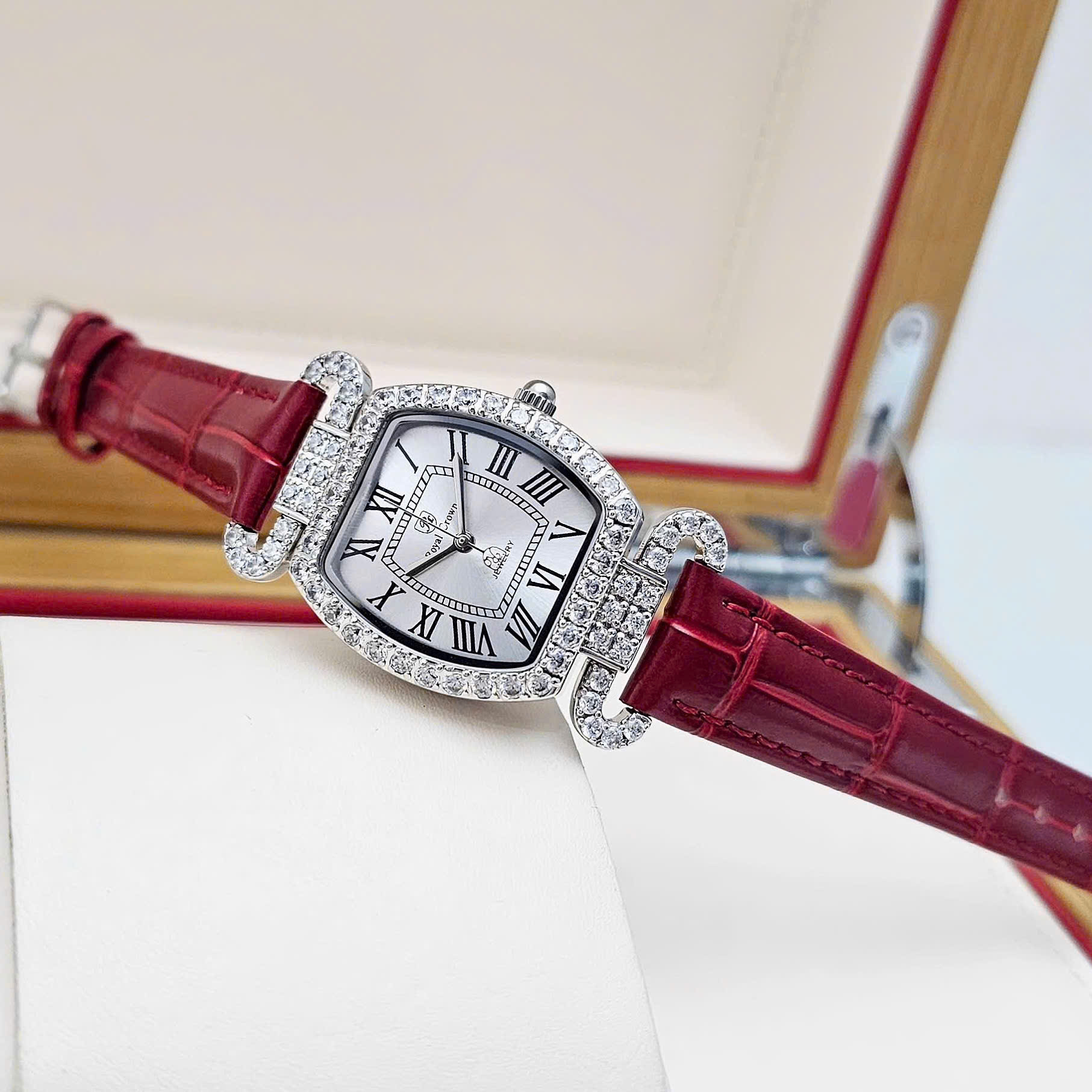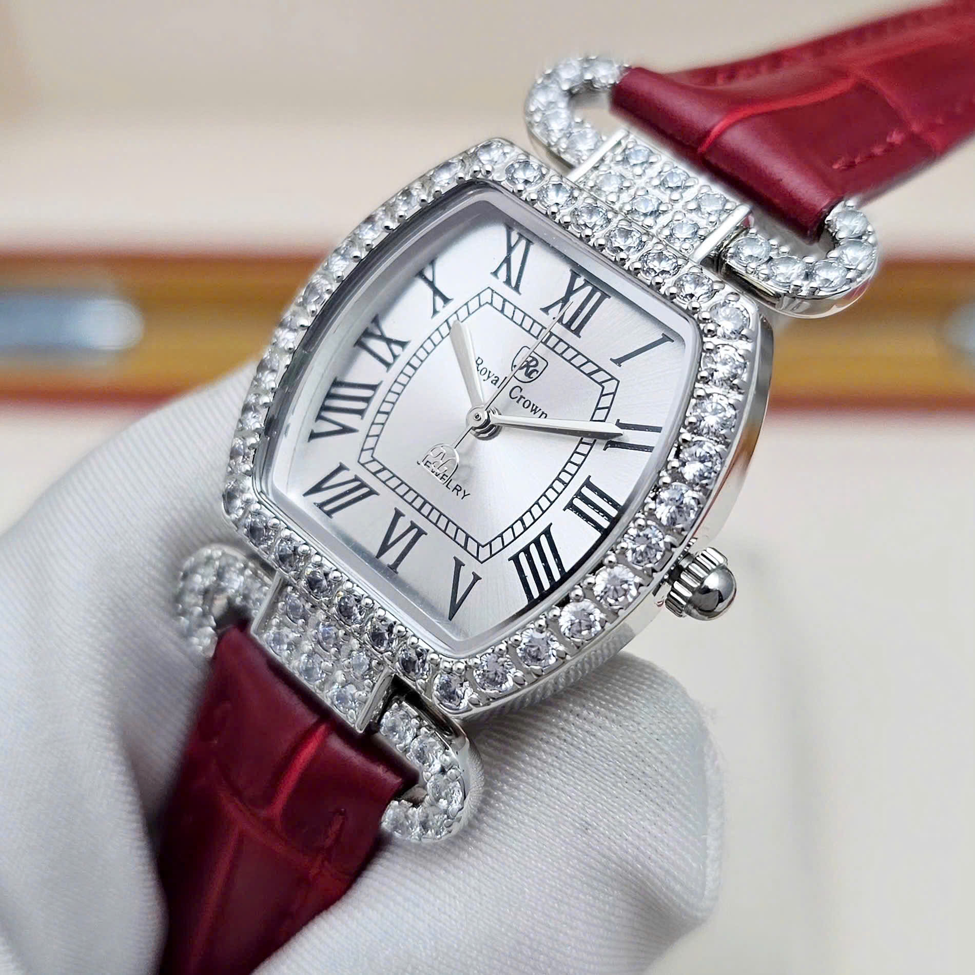 Đồng Hồ Nữ Royal Quartz 4670 Da Đỏ Mặt Trắng