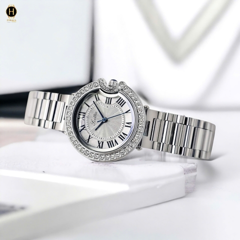 Sở hữu vẻ đẹp cuốn hút với dây thép không gỉ màu bạc, làm nổi bật mắt số màu trắng tinh tế kết hợp viền đính đá lấp lánh, tạo điểm nhấn độc đáo cho phong cách thời trang các chị đẹp.