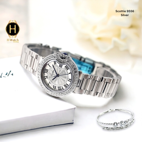 Đồng Hồ Nữ Scottie Quartz 9556 Thép Trắng Mặt Trắng