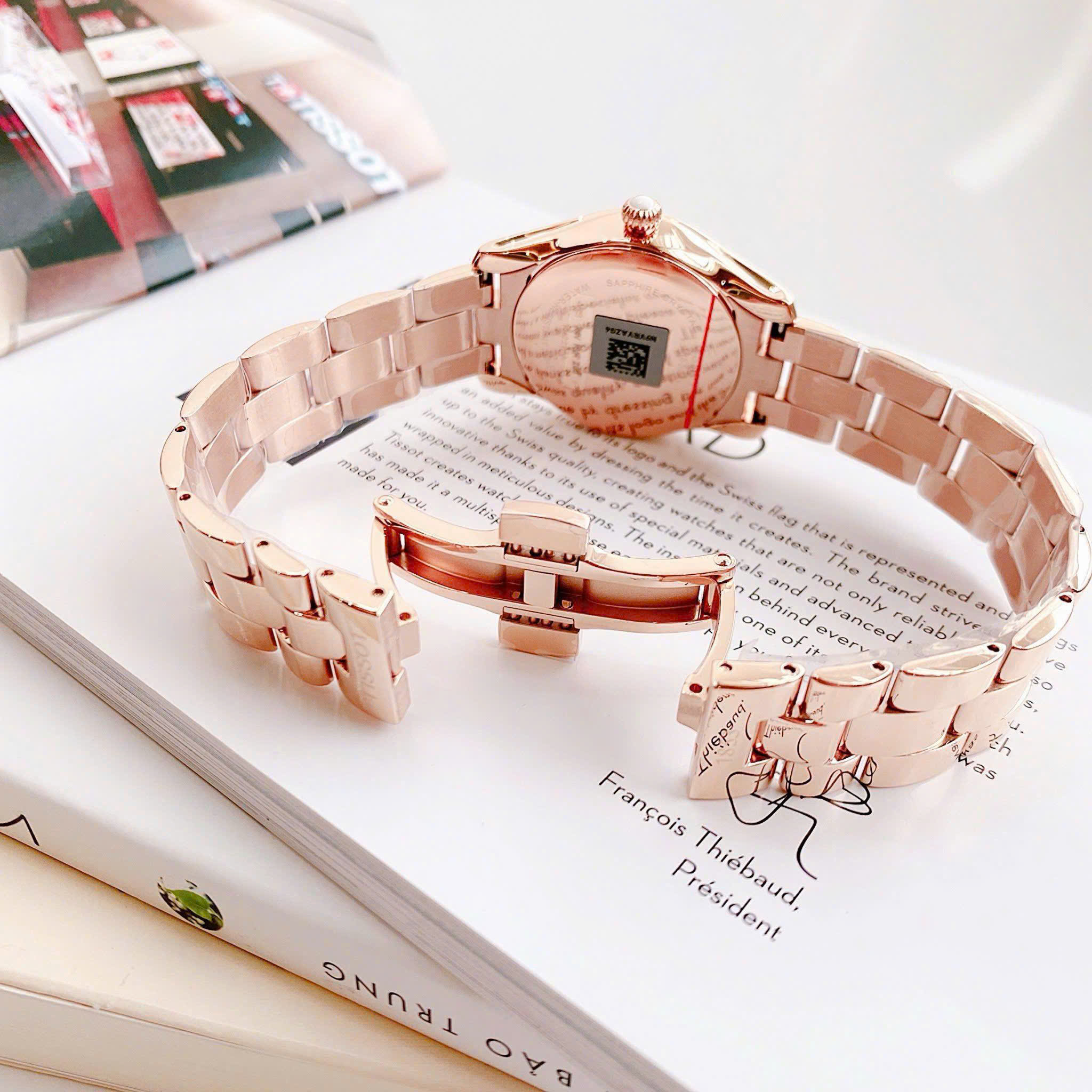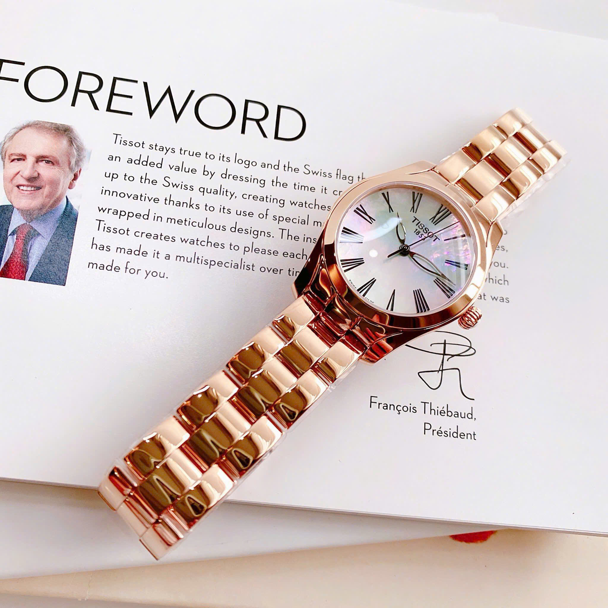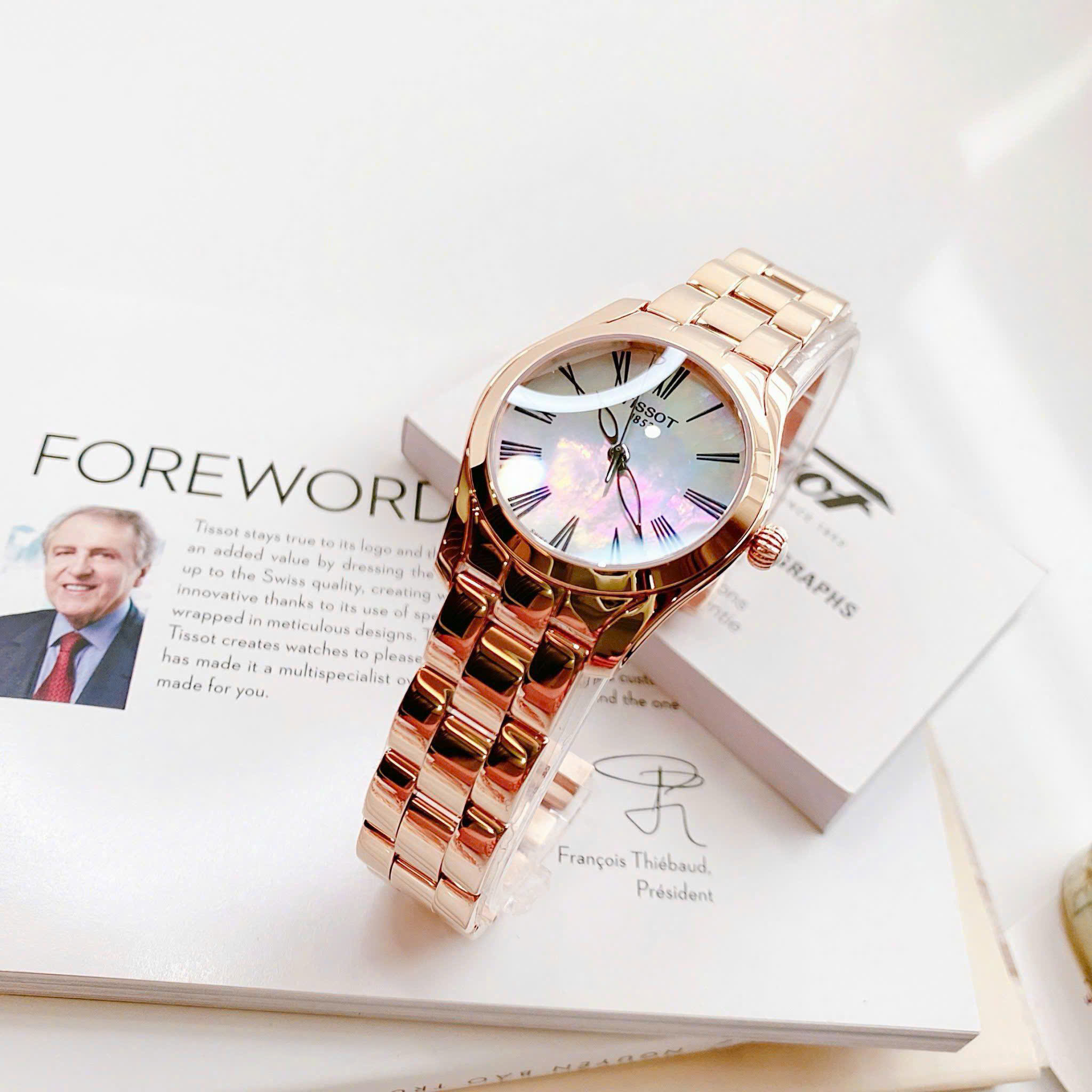 Đồng hồ nữ Tissot dáng cổ điển này mang đến vẻ đẹp thanh lịch và đẳng cấp với thiết kế vỏ thép không gỉ mạ vàng hồng sang trọng. Mặt số khảm xà trai kết hợp cọc số La Mã tinh xảo tạo nên sự hài hòa giữa cổ điển và hiện đại. Bộ kim thon gọn cùng kính sapphire chống trầy xước giúp bảo vệ và tôn vinh vẻ đẹp tinh tế của đồng hồ. Đây không chỉ là phụ kiện để xem giờ mà còn là món trang sức xa hoa khẳng định phong cách và đẳng cấp riêng của người phụ nữ hiện đại.