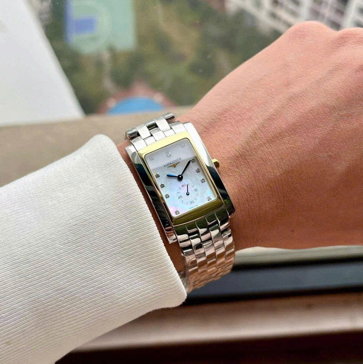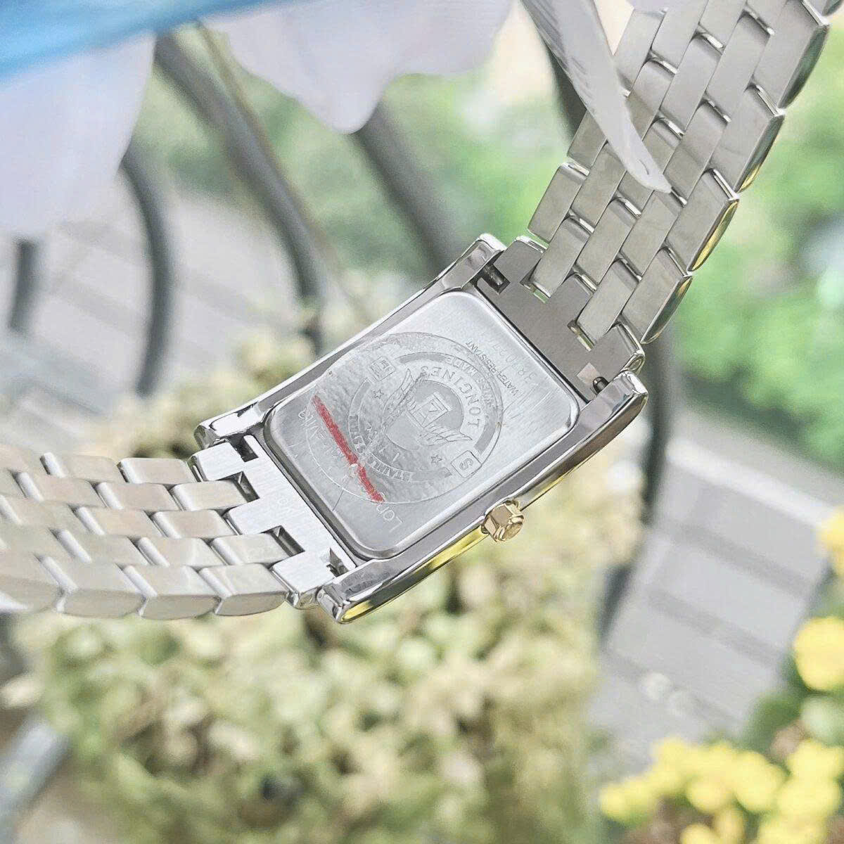 Chiếc đồng hồ Longines này sở hữu thiết kế tinh xảo với dây thép không gỉ phối hai tông màu bạc – vàng giúp chiếc đồng hồ trở thành phụ kiện hoàn hảo cao cấp mang lại vẻ đẹp thanh lịch và bền bỉ. Mặt số hình chữ nhật độc đáo được chế tác từ chất liệu khảm trai sang trọng và điểm nhấn ngay góc 12h cọc số đính kim cương lấp lánh tôn lên vẽ sang trọng và quý phái. Bộ kim xanh làm nổi bật kết hợp cùng mặt số phụ hiển thị giây ở vị trí 6h tăng tính thẩm mỹ. Từng chi tiết đều được hoàn thiện tỉ mỉ thể hiện phong cách thời trang thanh lịch, sang trọng và luôn được mọi người ưu tiên lựa chọn.