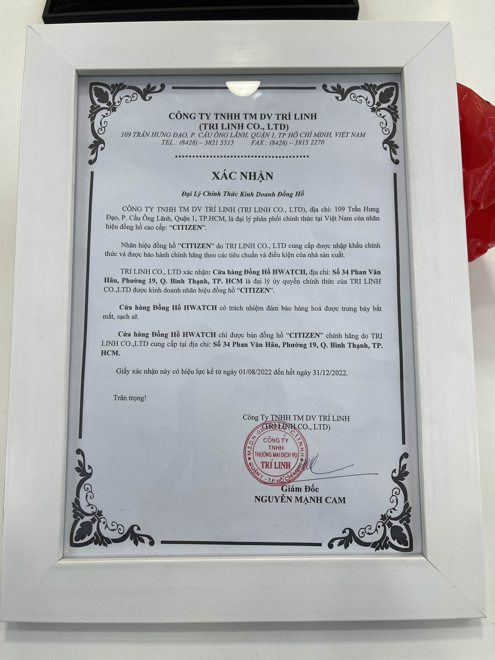 Chứng nhận đại lý ủy quyền thương hiệu đồng hồ Citizen