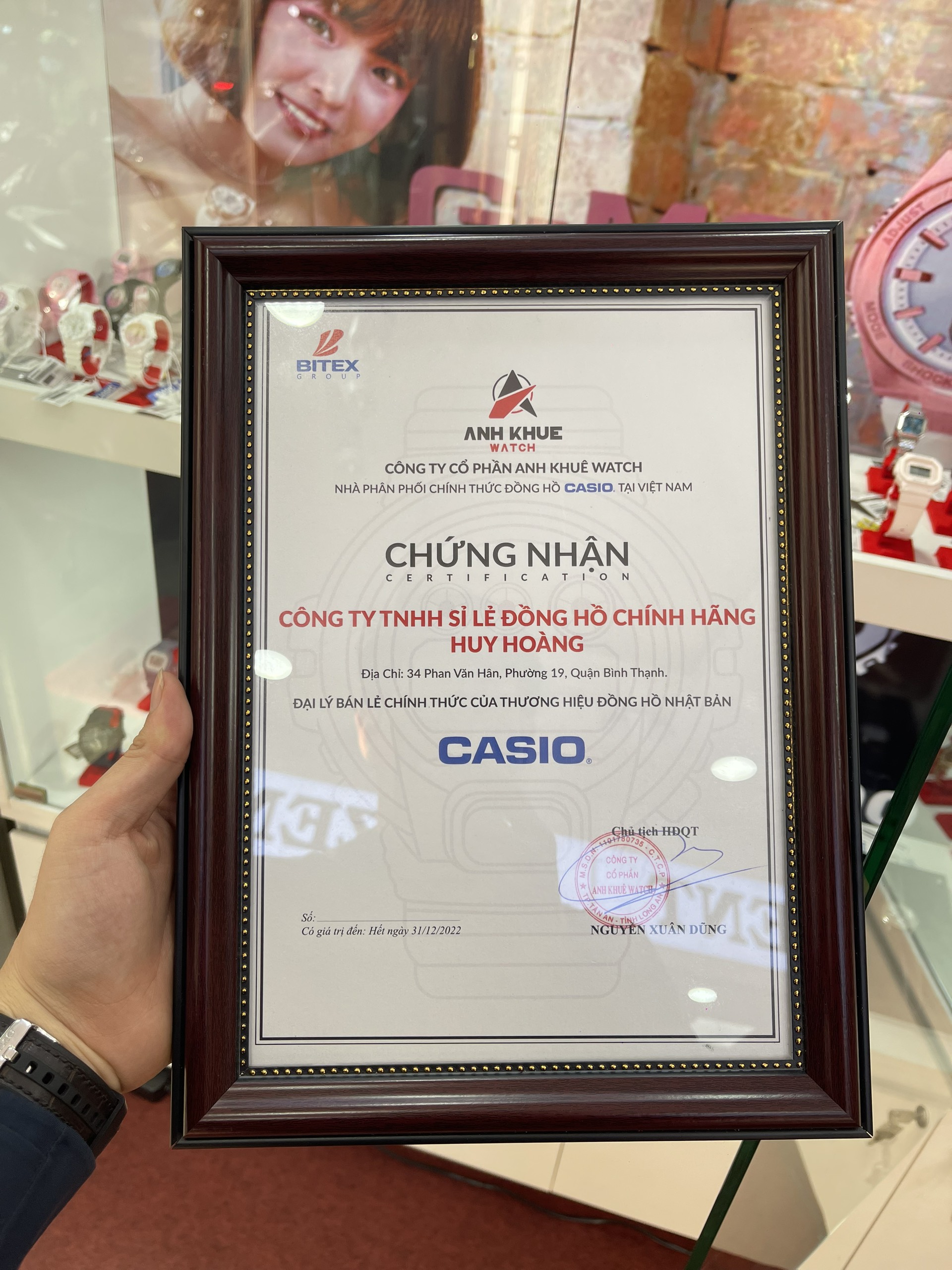 Hwatch được công nhận là đại lý phân phối chính thức của thương hiệu đồng hồ đeo tay Casio tại Việt Nam do Anh Khuê chứng nhận.